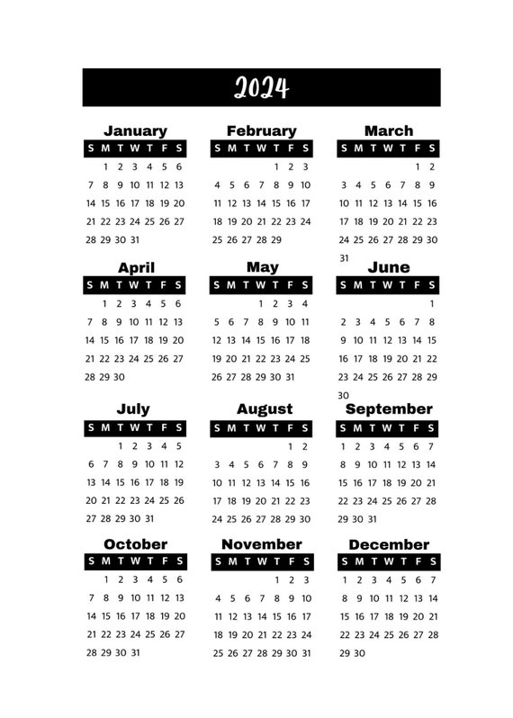 Printable 2024 Calendar Year View At a glance With Cover Etsy